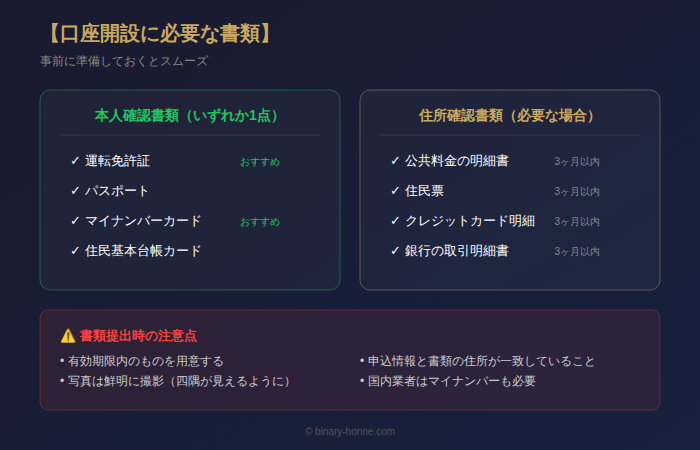 バイナリーオプション口座開設の流れ|審査に落ちない書類準備のコツ