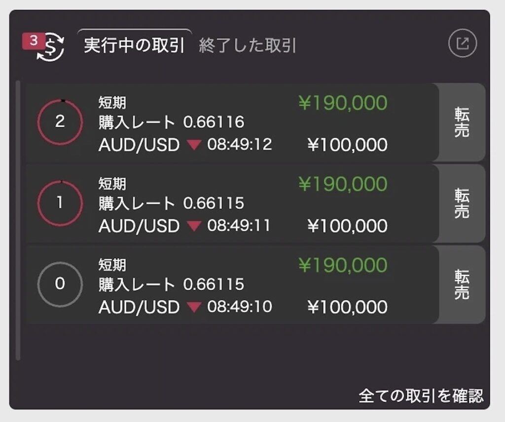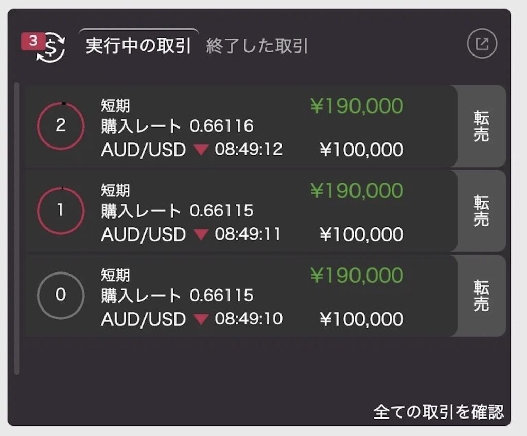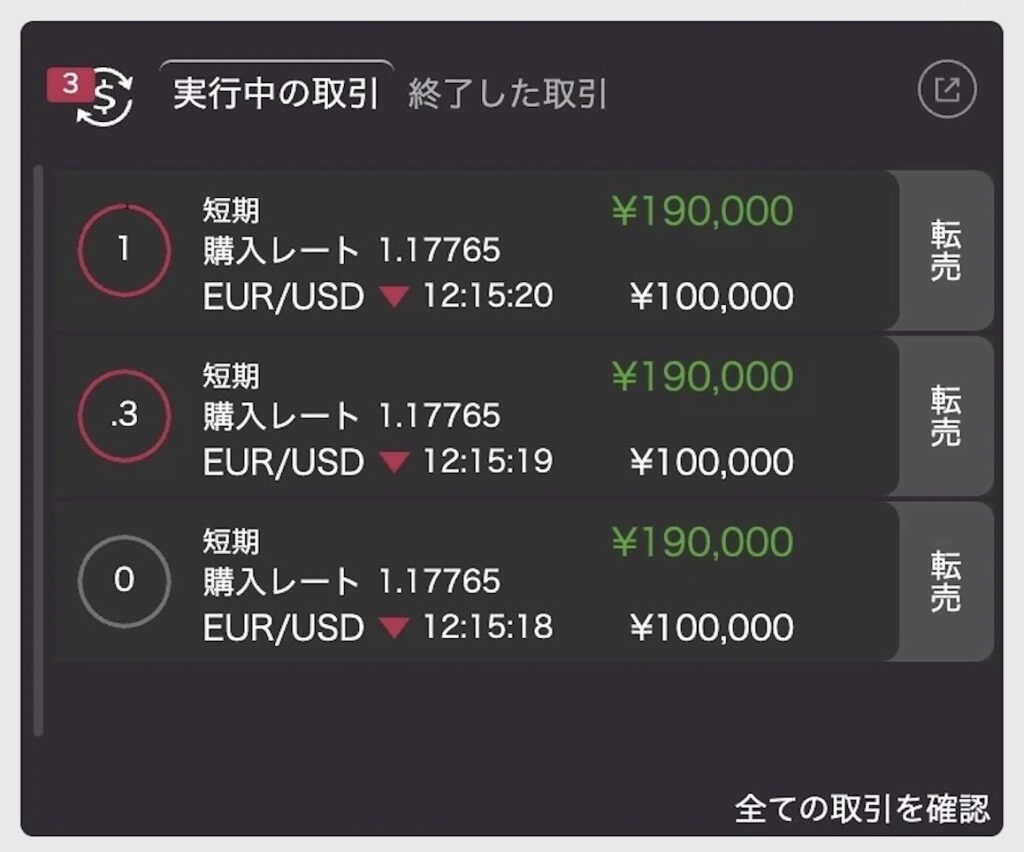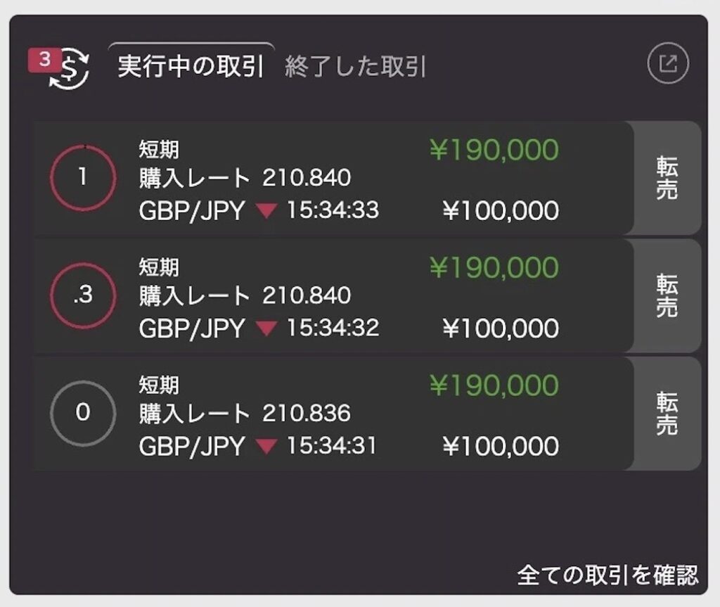 実際に利益が出た取引を見る