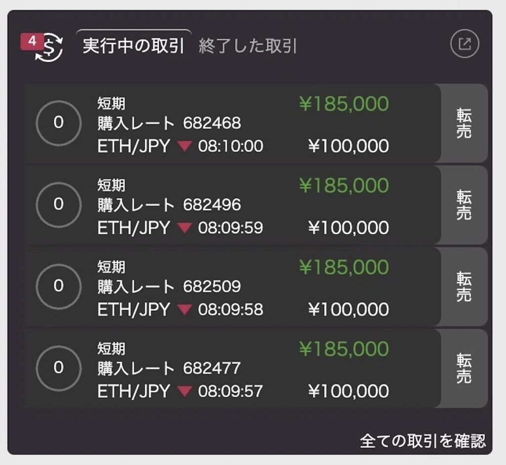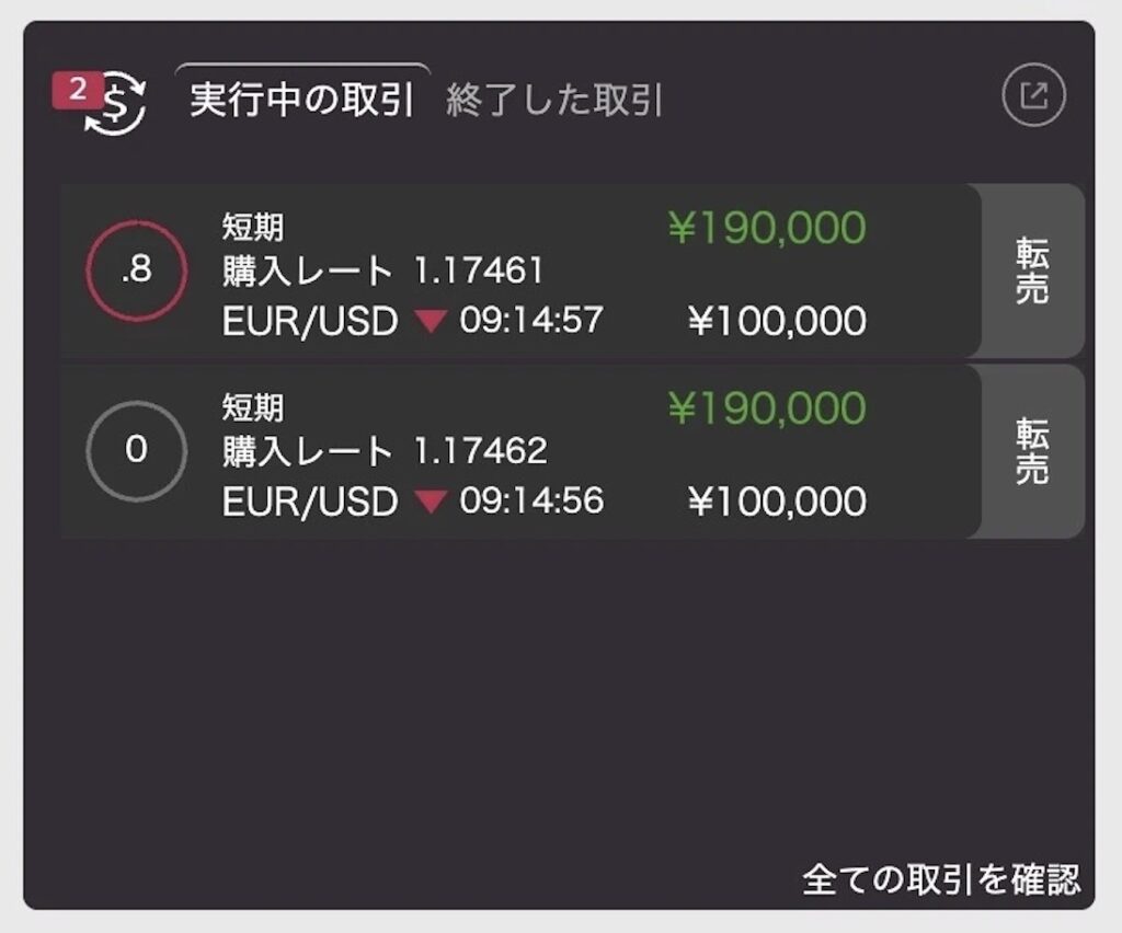 これが実際の取引画面。