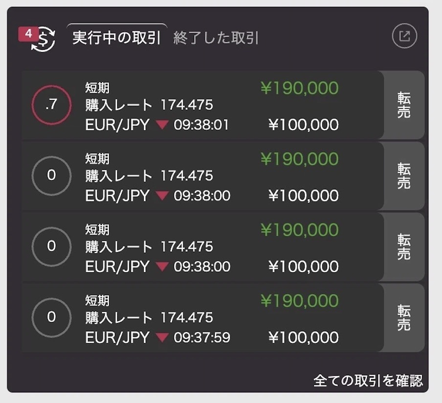 私は60秒取引がメイン。慣れてきたら30秒とかもアリだけど、最初は1分くらいがちょうどいいと思う