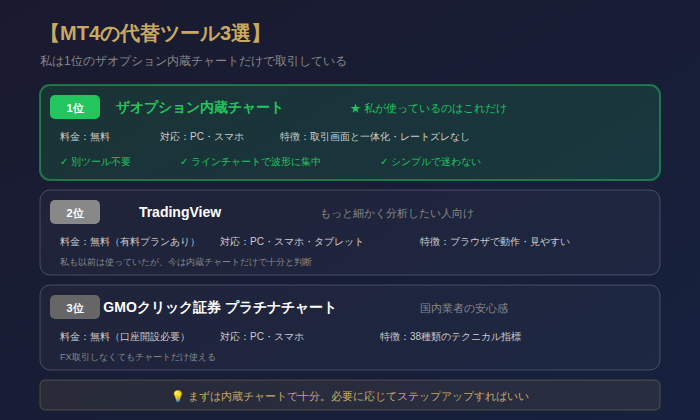 ここからは、MT4の代わりに使えるツールを紹介する。