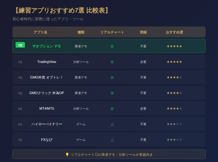 バイナリーオプションの練習アプリを7つ紹介した。