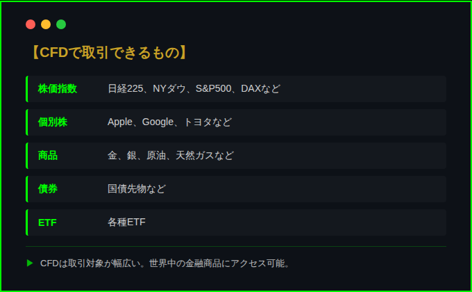 CFDで取引できるもの