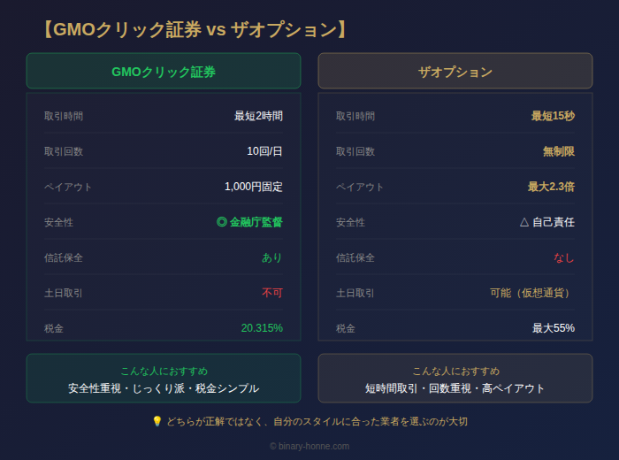 海外業者との詳しい比較はバイナリーオプションおすすめ業者|専業トレーダーが実際に使う3社で解説している。