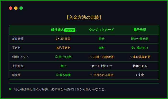 ただし、海外業者を使う場合は、出金実績のある信頼できる業者を選ぶことが絶対条件。悪質な業者に引っかかると、せっかく勝っても出金できない。