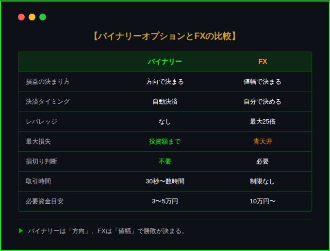 👉 FXとバイナリーオプションの違い|両方やった私が9項目で比較