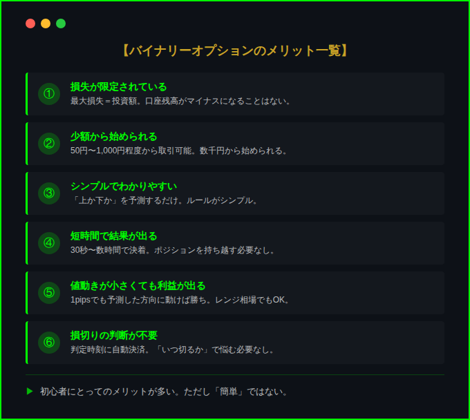 バイナリーオプションのメリット